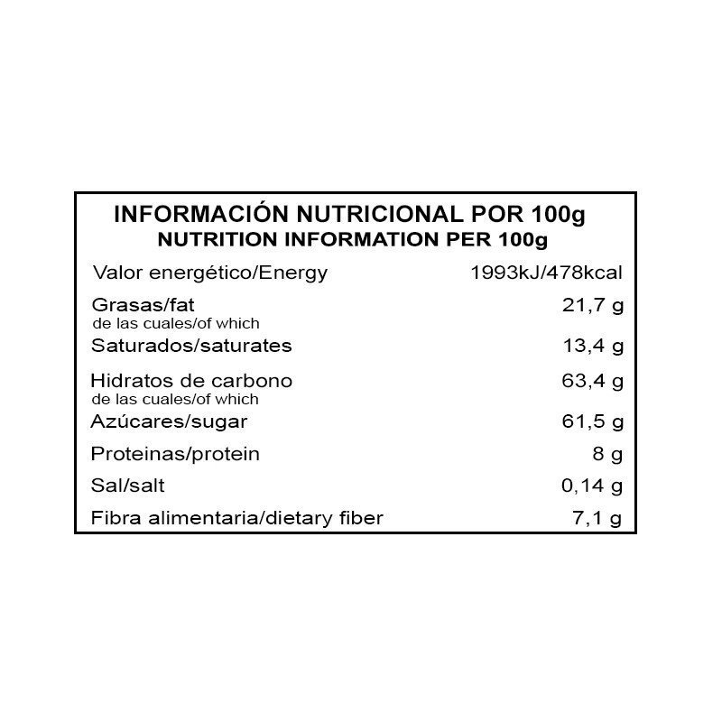 INGREDIENTES: Azúcar, manteca de cacao, leche entera en polvo, emulgente: lecitina de soja, aroma natural de vainilla. Aceite girasol, aceite de coco, crepes, harina de trigo, mantequilla concentrada ,malta de cebada, sal, suero de leche en polvo, almidón de maíz, jarabe de glucosa deshidratado, ácido cítrico, sorbato potásico y dulce de leche.